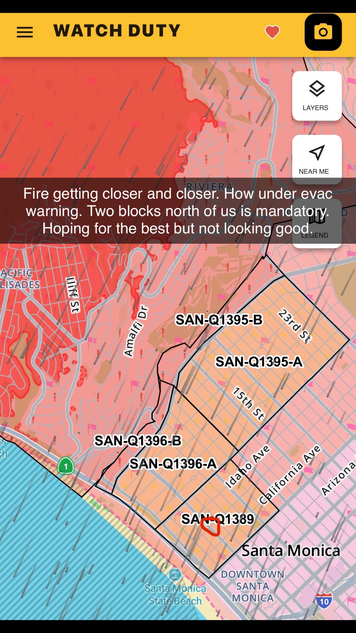 By 11:32am I had already received the first warning on my phone. We live in Santa Monica between Wilshire (a major artery through the city of Los Angeles) and Montana (a sort of local’s street that borders the North Montana neighborhood, home to some of the most beautiful and expensive real estate in the country). Further north, above that neighborhood is a little canyon (Rustic Canyon) that separates us from the Pacific Palisades. It’s full of the gorgeous homes of recognizable figures in media and business. We often wander through the winding streets of that canyon on long weekend walks, sometimes stopping at the Golden Bull for a drink on the way home.